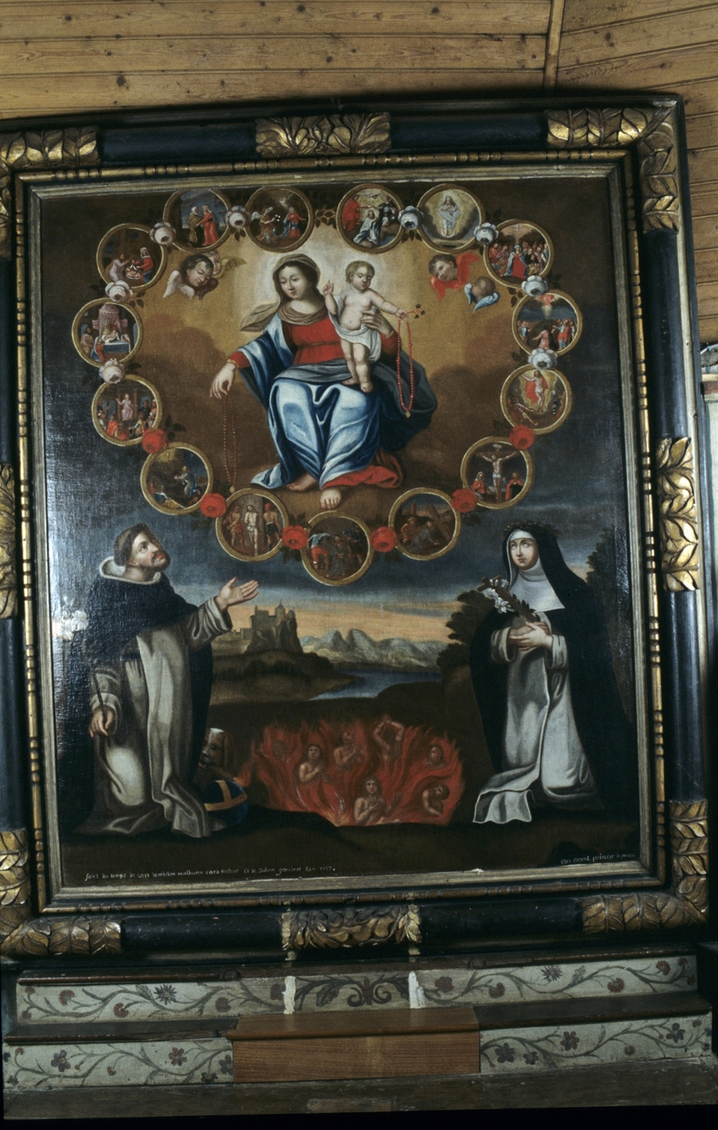 Tableau : Don du Rosaire à saint Dominique et à sainte Catherine de Sienne, chapelle Saint-Mélec (Lanouée fusionnée en Forges de Lanouée en 2019),