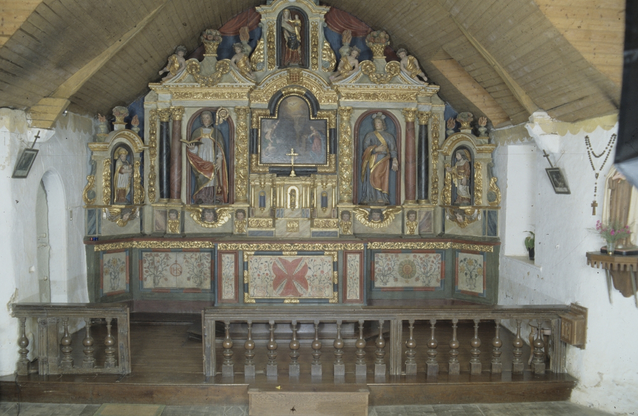 Ensemble du maître-autel : autel, retable, tabernacle, 2 gradins d'autel, chapelle Saint-Mélec (Lanouée fusionnée en Forges de Lanouée en 2019),
