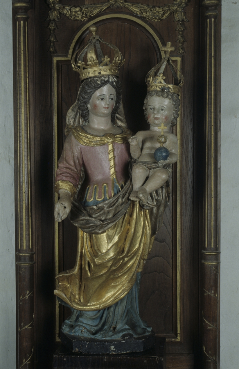 Statue de procession : Vierge à l'Enfant, dite Notre-Dame des fleurs, chapelle Saint-Mélec (Lanouée fusionnée en Forges de Lanouée en 2019),