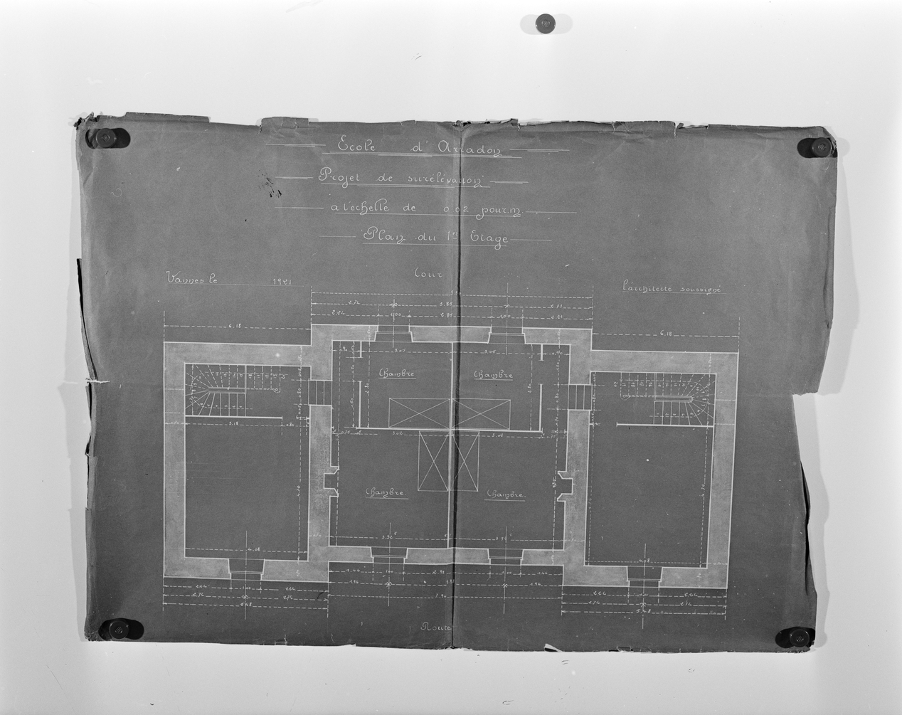 Ecole, mairie, projet de rehaussement, étage, vers 1921.Immatriculation