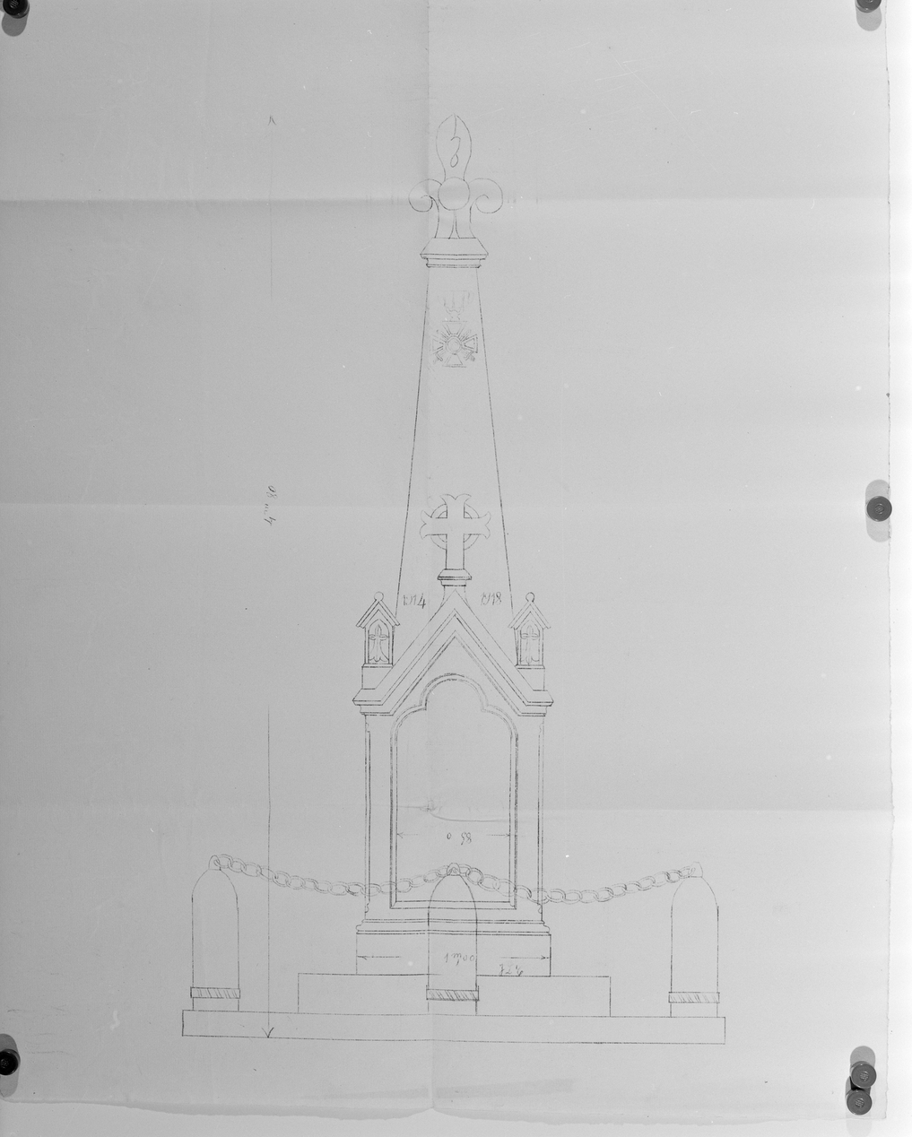 Monument aux morts, plan vers 1920.Immatriculation
