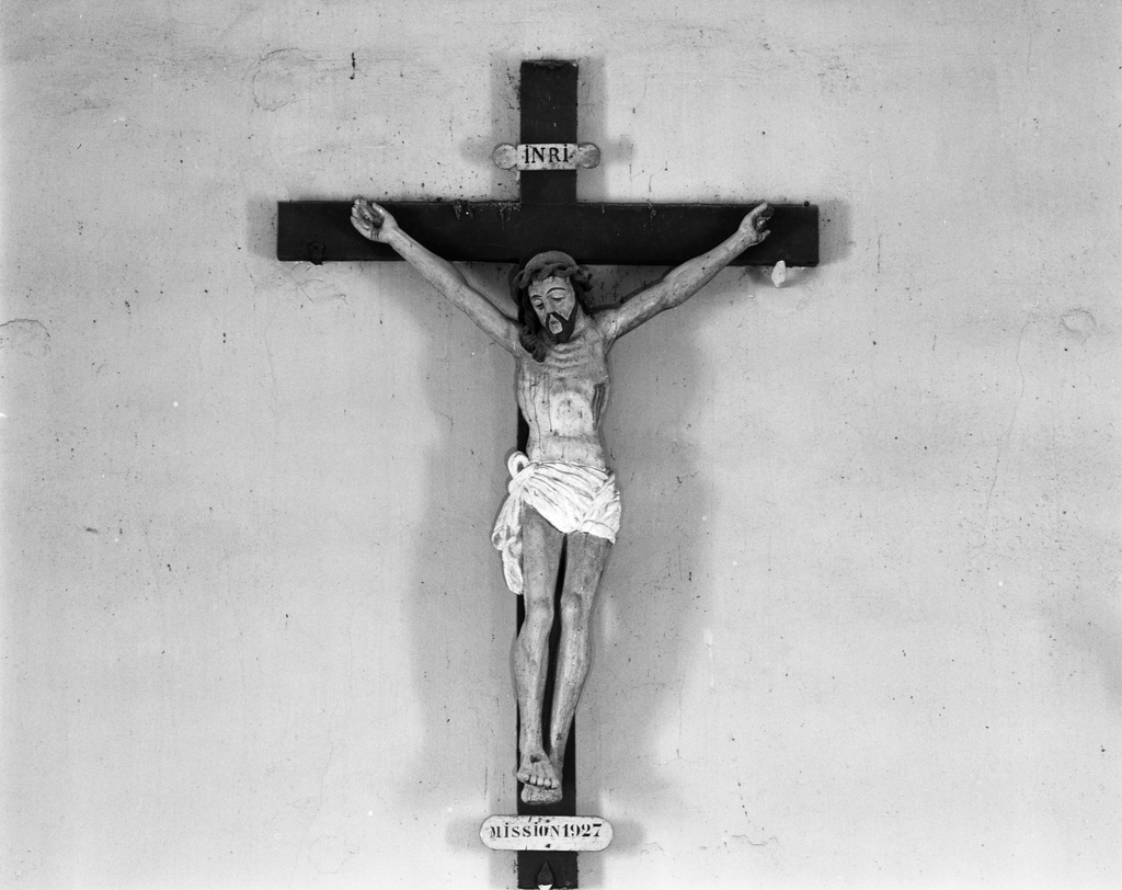 Croix : Christ en croix, église paroissiale Saint-Vincent Ferrier (le Tour-du-Parc),