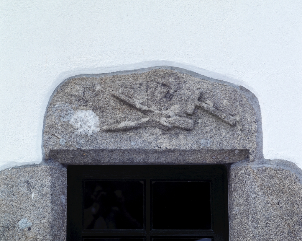 Porh Nèze, maison, élévation nord : détail linteau.Immatriculation