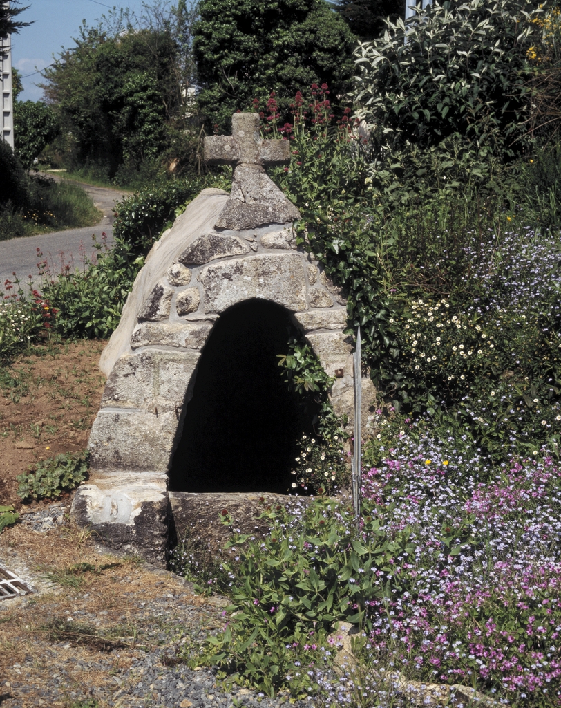 La Villeneuve, angle des Vieilles Vignes et rue de Guernevé, vue générale de la fontaine prise du sud-ouest.Immatriculation