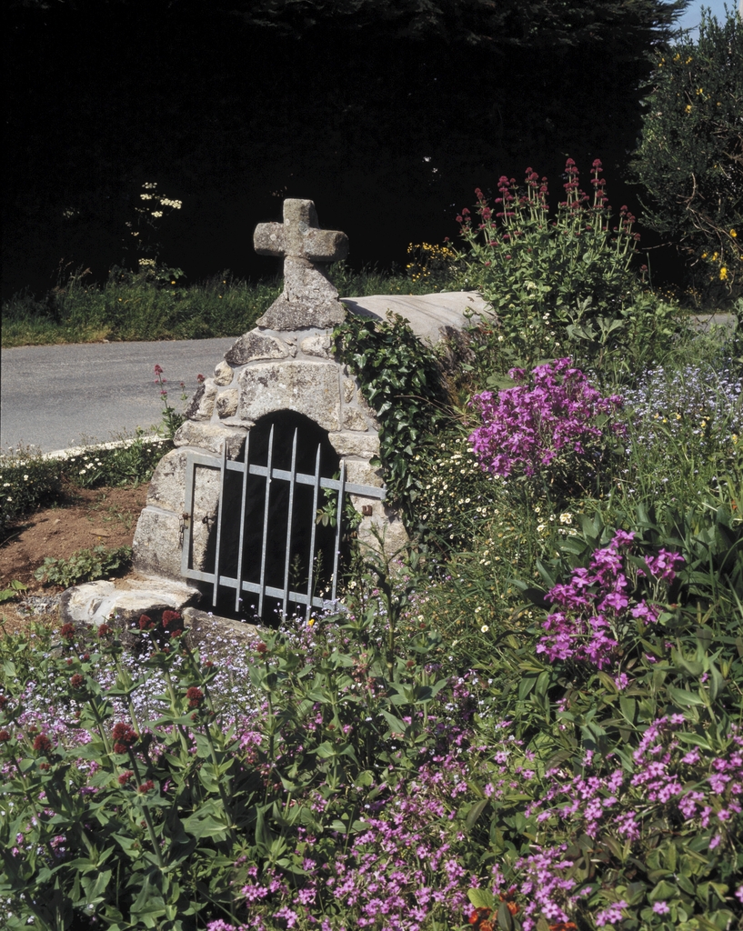 La Villeneuve, fontaine, angle chemin des Vieilles Vignes et rue de Guernevé, vue générale de la fontaine prise du sud-ouest.Immatriculation