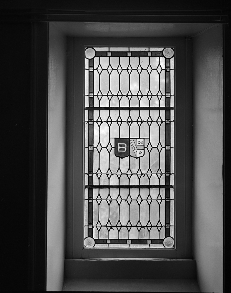 Corps principal, escalier : vitrail.Immatriculation