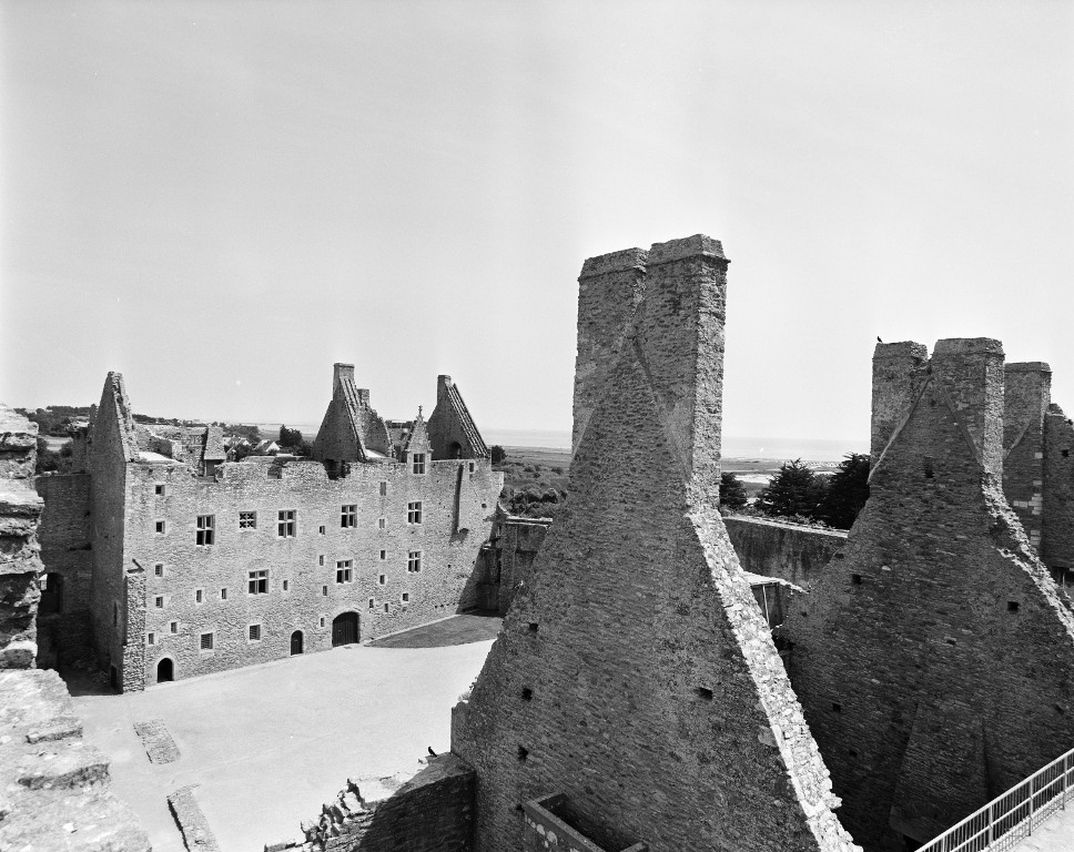Château fort, logis est, élévation ouest, vue prise du logis ouest.Immatriculation