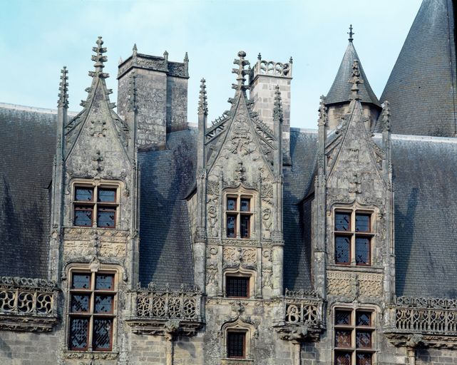 Logis, élévation sur cour : lucarnes 8 à 10 à partir du sudImmatriculation