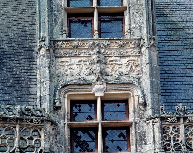 Logis, élévation sur cour, 8e lucarne à partir du sud : décor du devant de lucarneImmatriculation