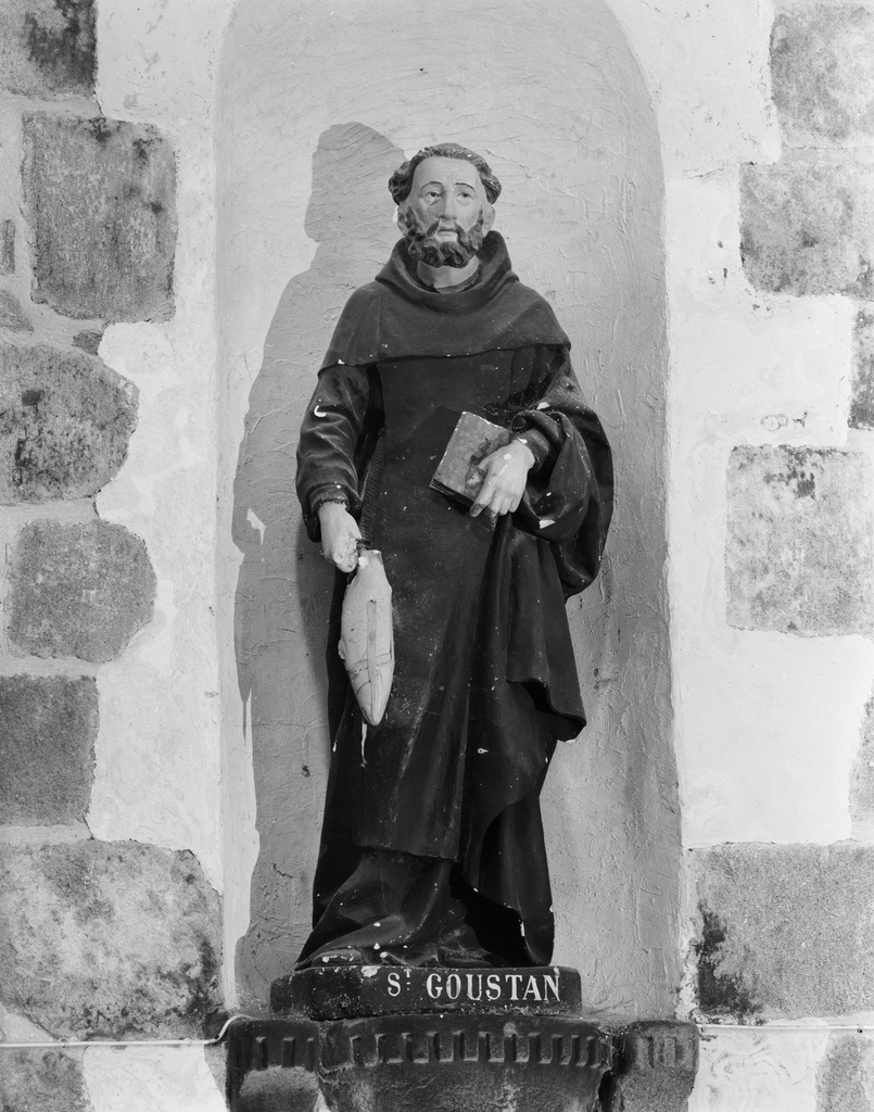 Statue (petite nature) : saint Goustan, abbaye de bénédictins Saint-Gildas, de bénédictins de la congrégation de Saint-Maur, de soeurs de la charité de Saint-Louis (Saint-Gildas-de-Rhuys),