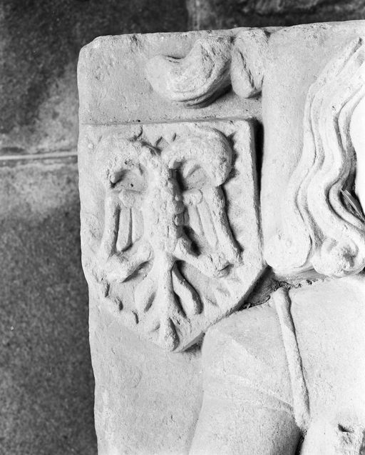 Tombeau de la famille Herbaut-Quelen : blason près de la tête du chevalier (état en 1993)Immatriculation