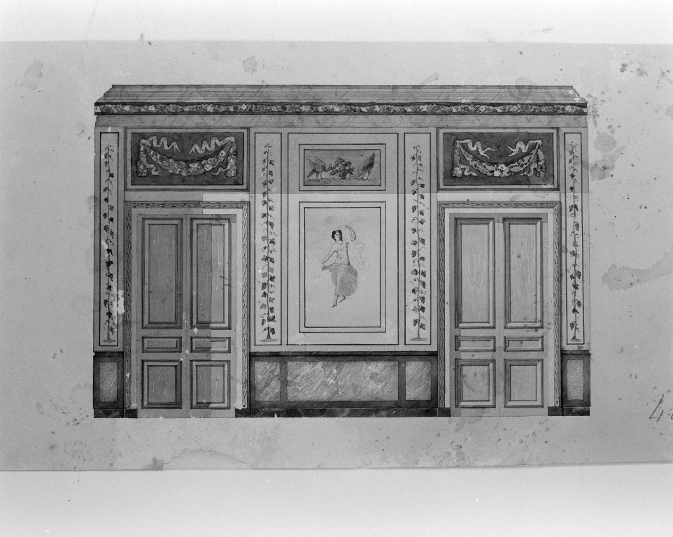 Grande salle à manger. Projet de modification du décor. Epoque Restauration, (plan n°44), coll. Part.Immatriculation