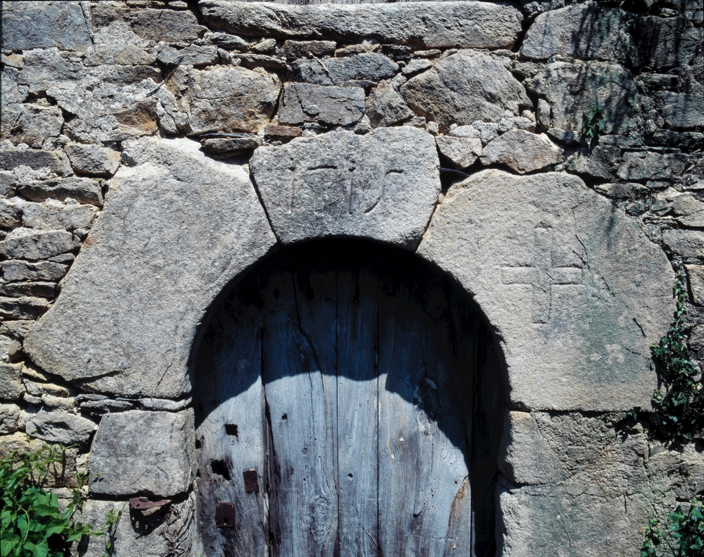 Village, maison, AB 104, datée 1715 : détail de la porte.Immatriculation