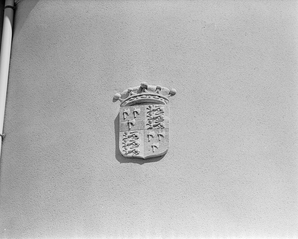 Château, élévation sud, tour ouest : blason.Immatriculation