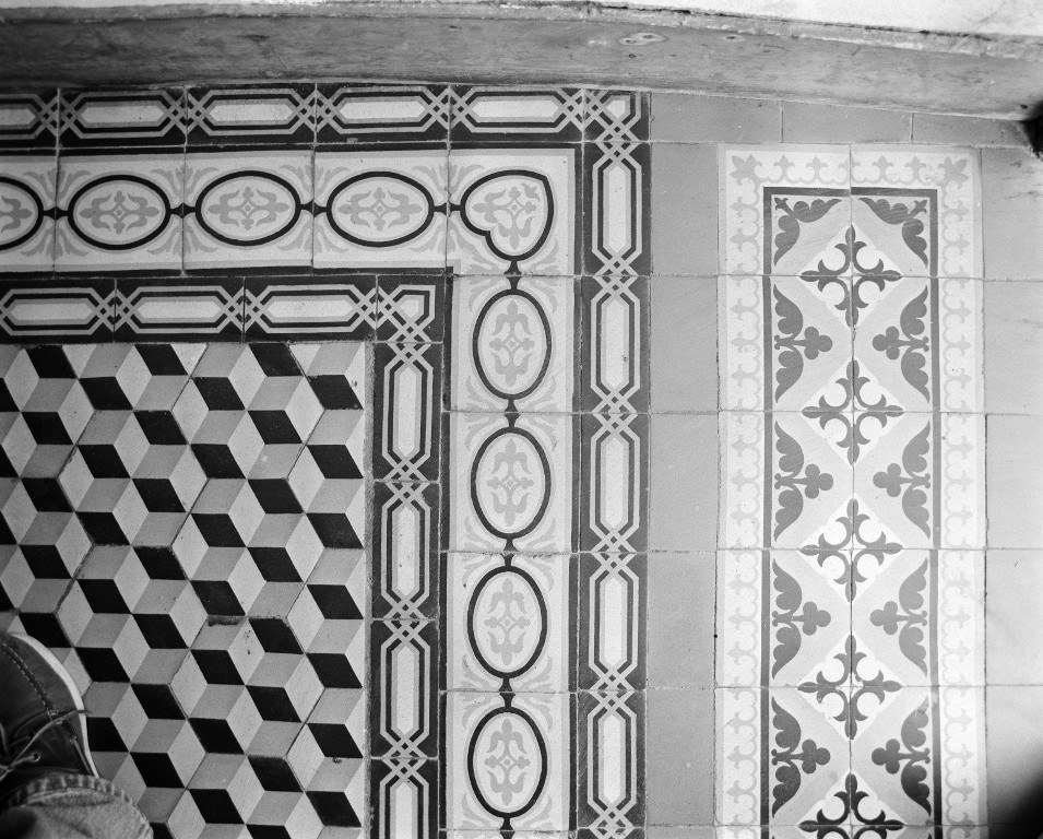 Bréhuédic, impasse du Moulin : détail du pavement.Immatriculation