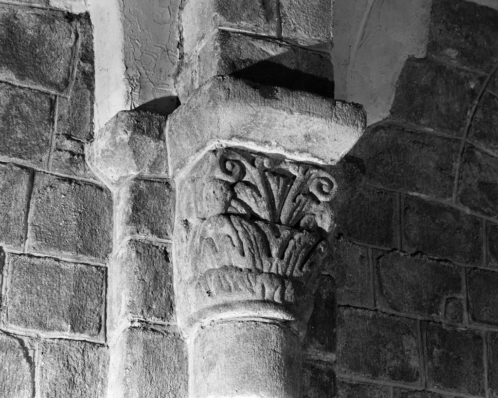 Chapiteaux (32), bases (16), abbaye de bénédictins Saint-Gildas, de bénédictins de la congrégation de Saint-Maur, de soeurs de la charité de Saint-Louis (Saint-Gildas-de-Rhuys),