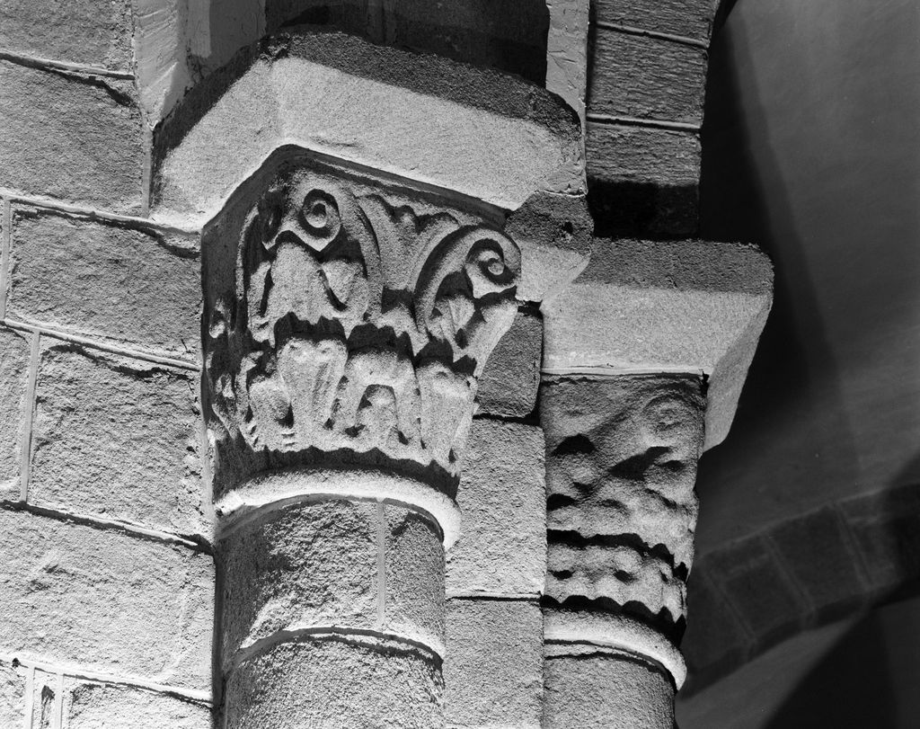 Chapiteaux (32), bases (16), abbaye de bénédictins Saint-Gildas, de bénédictins de la congrégation de Saint-Maur, de soeurs de la charité de Saint-Louis (Saint-Gildas-de-Rhuys),