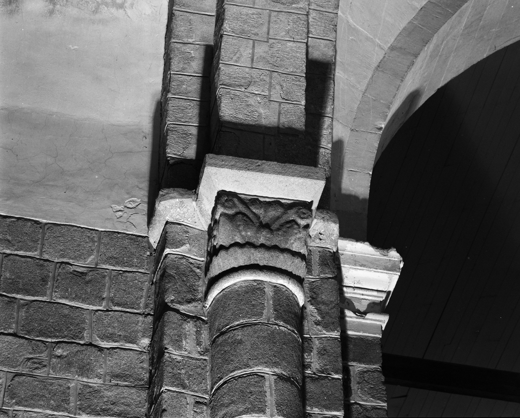 Chapiteaux (32), bases (16), abbaye de bénédictins Saint-Gildas, de bénédictins de la congrégation de Saint-Maur, de soeurs de la charité de Saint-Louis (Saint-Gildas-de-Rhuys),
