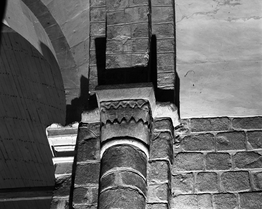 Chapiteaux (32), bases (16), abbaye de bénédictins Saint-Gildas, de bénédictins de la congrégation de Saint-Maur, de soeurs de la charité de Saint-Louis (Saint-Gildas-de-Rhuys),