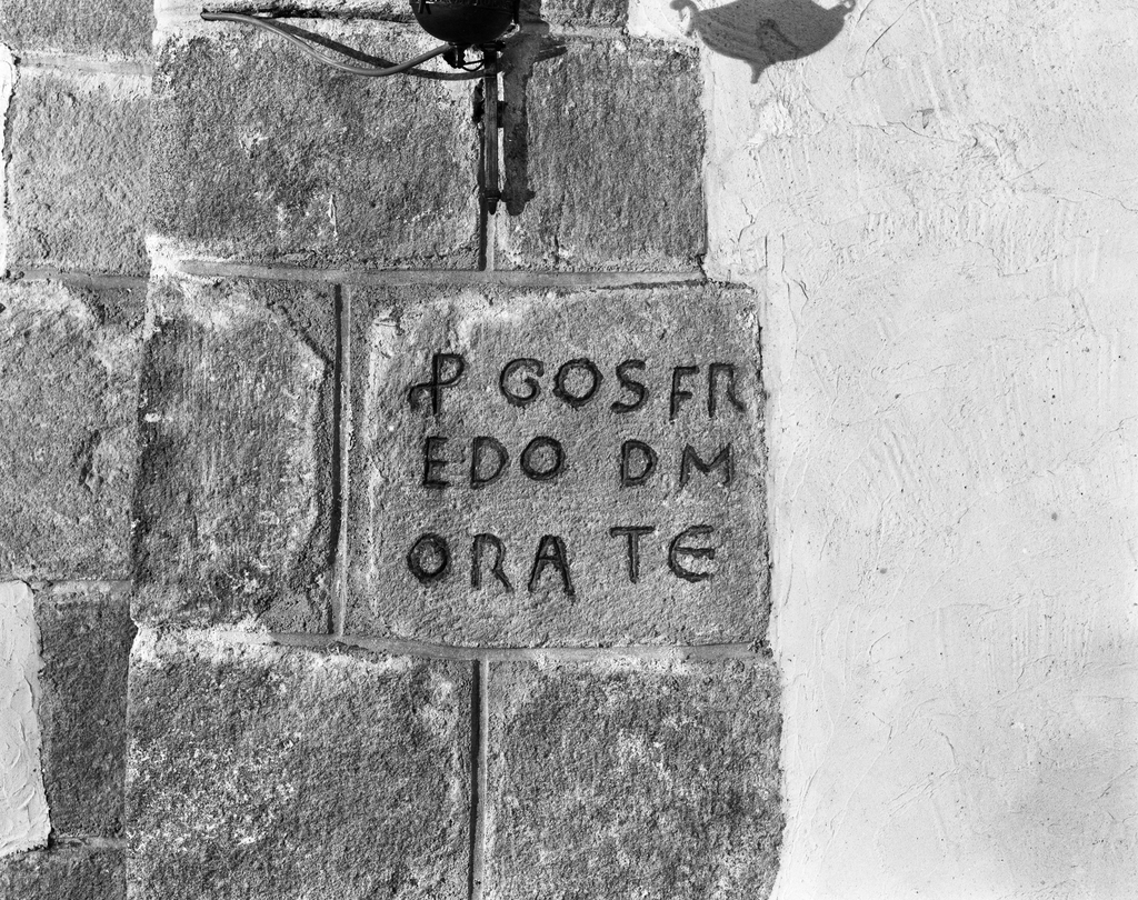 Vue intérieure : chapelle absidiale mur nord : inscription..Immatriculation