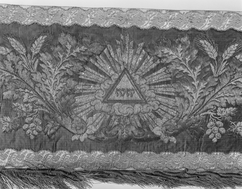 Draperie de brancard, bande latérale 2, détail du motif central.Immatriculation