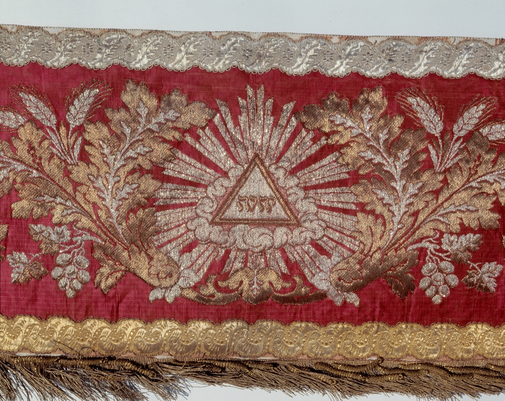 Draperie de brancard, bande latérale 2, détail du motif central.Immatriculation