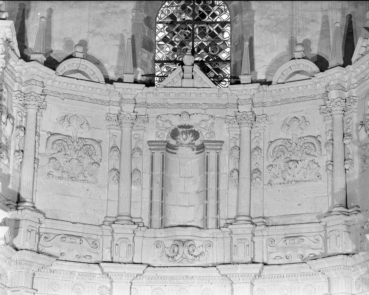 Retable (retable architecturé à niches), abbaye de bénédictins Saint-Gildas, de bénédictins de la congrégation de Saint-Maur, de soeurs de la charité de Saint-Louis (Saint-Gildas-de-Rhuys),