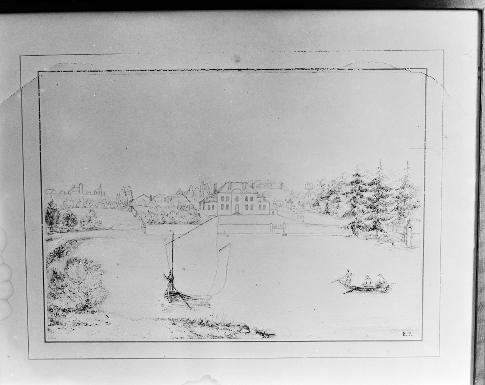 Château, dessin, avant 1830, signé F.P., coll. Part.Immatriculation
