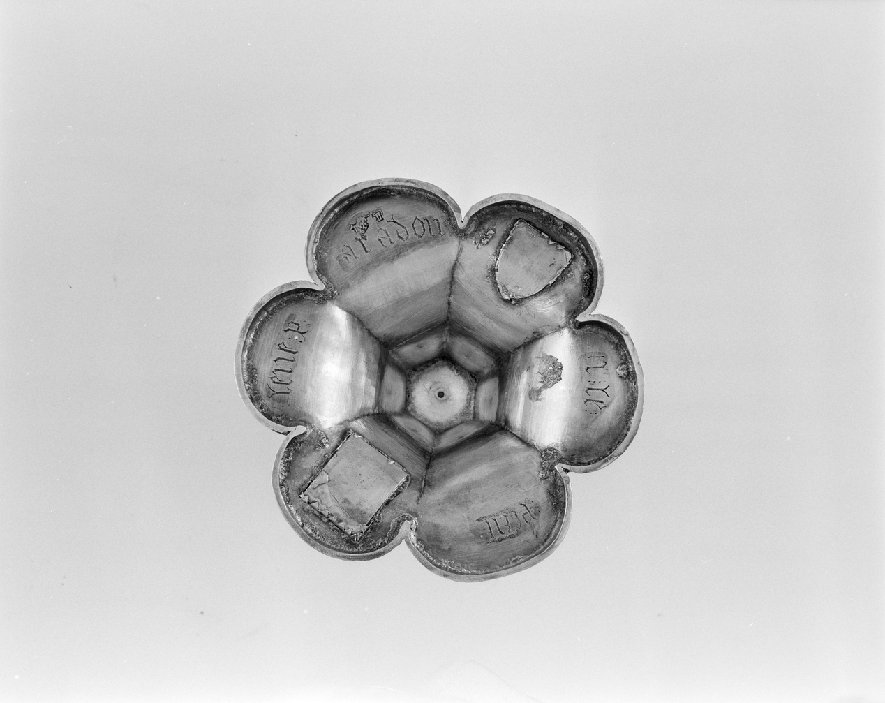 Calice n°1, revers du pied.Immatriculation
