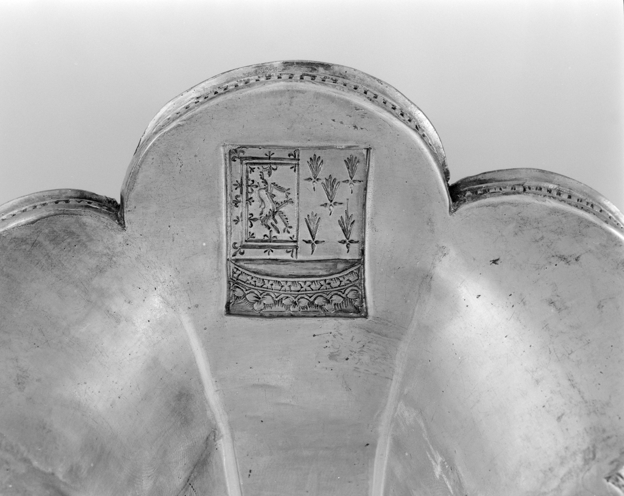 Calice n°1, pied, détail armoiries.Immatriculation