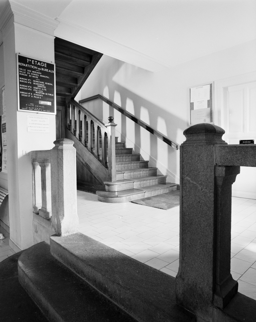 Mairie, rez-de-chaussée : entrée et escalier (état en 1993)Immatriculation