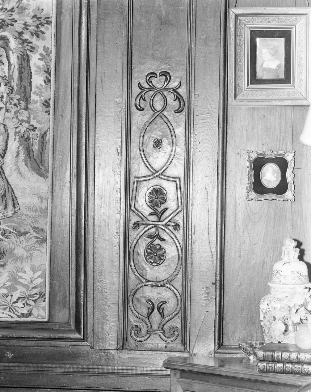 Maison, rez-de-chaussée, pièce nord, mur nord : décor du lambris (état en 1993)Immatriculation