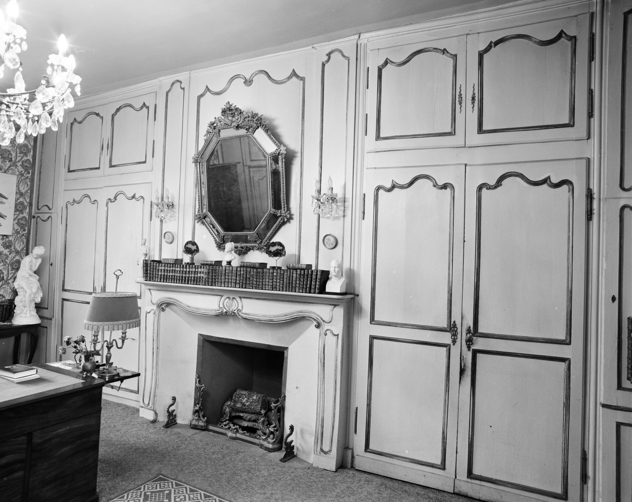 Maison, rez-de-chaussée, pièce sud, mur sud : cheminée et lambris (état en 1993)Immatriculation