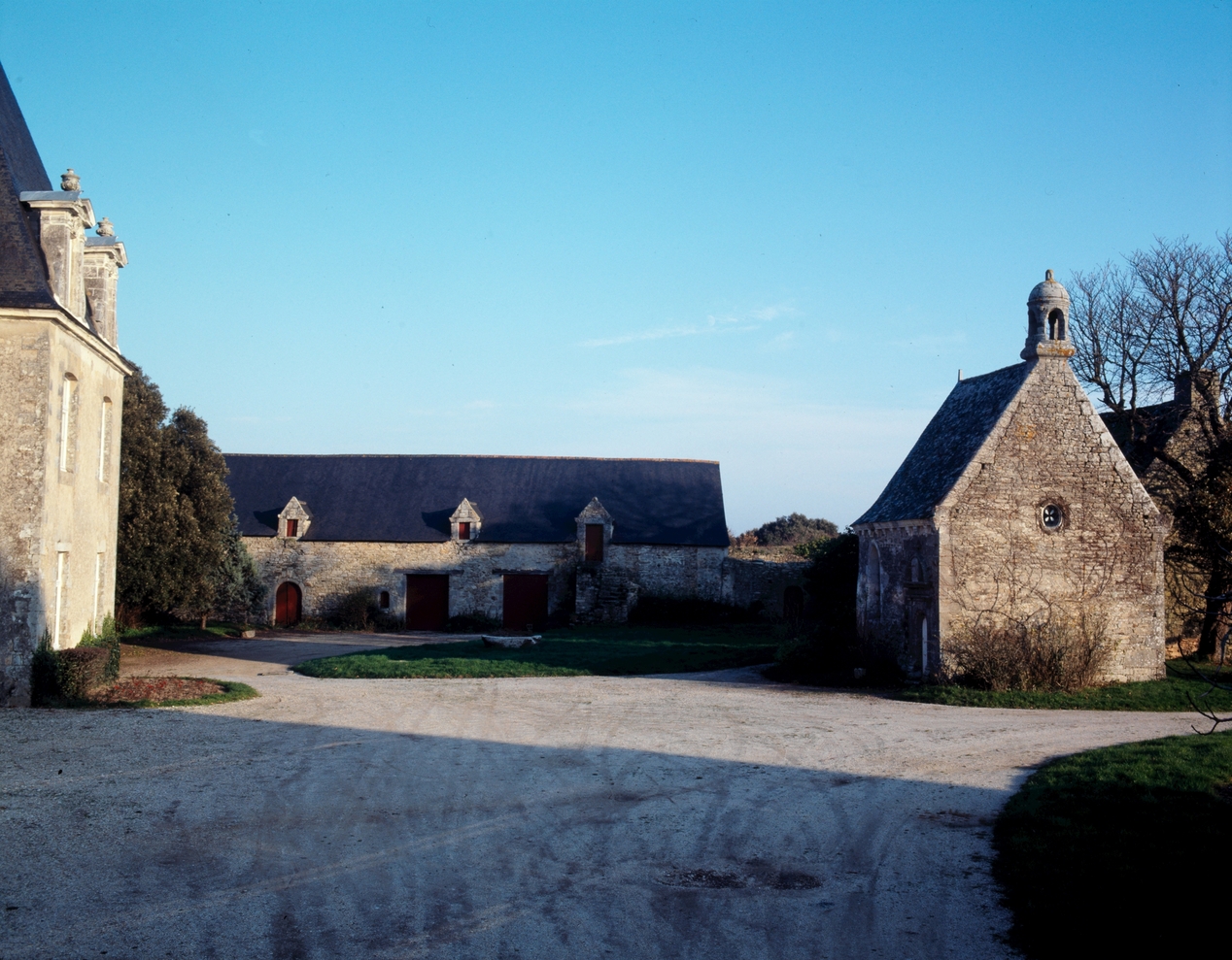 Château, communs et chapelle. Vue prise de l'ouest.Immatriculation