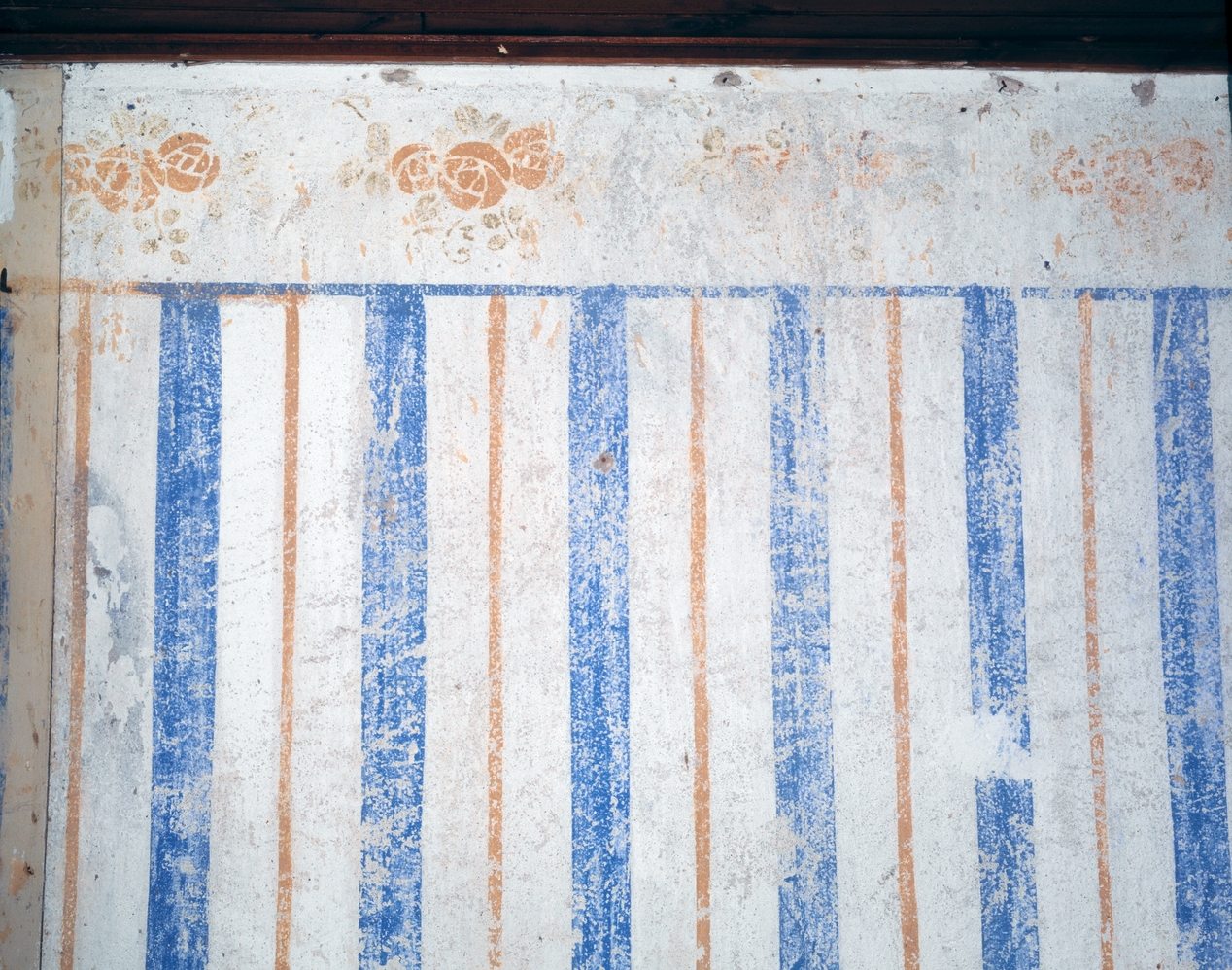Maison, chambre sud-est, mur nord, décor peint au pochoir.Immatriculation