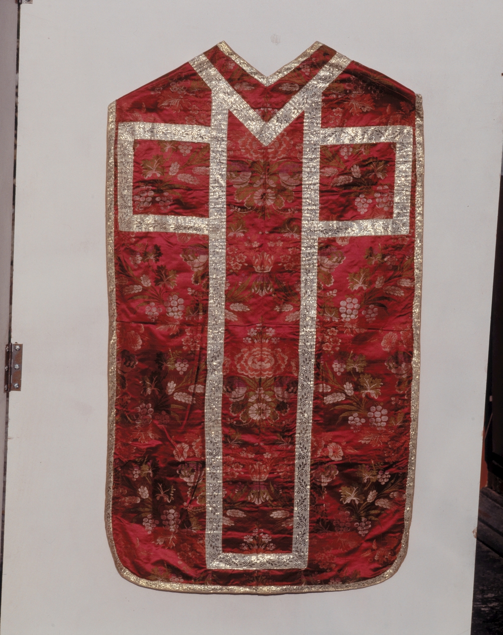 Chasuble, bourse de corporal, étole, manipule, voile de calice, ornement, chapelle Saint-Sauveur, Saint-Nicolas (Arzon),