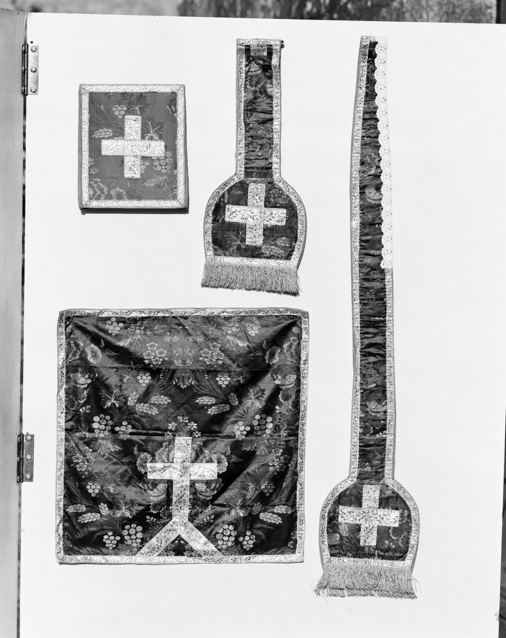 Ornement, ensemble, étole, manipule, bourse, voile du calice.Immatriculation