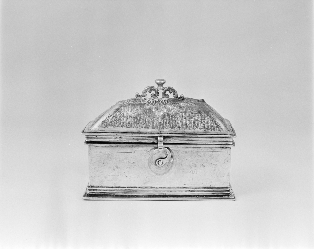 Coffret aux saintes huiles, vue générale.Immatriculation