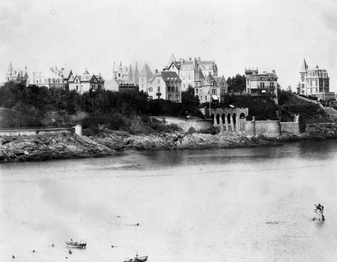 Vue d'ensemble de la pointe de la malouine, prise de la plage de l'écluse, photo [avant 1895].Immatriculation