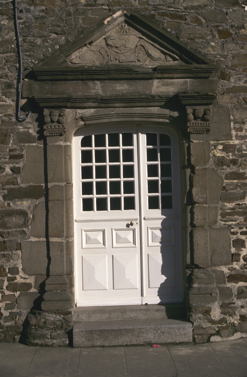 Bourg - Maison, élévation antérieure : détail porte.Immatriculation
