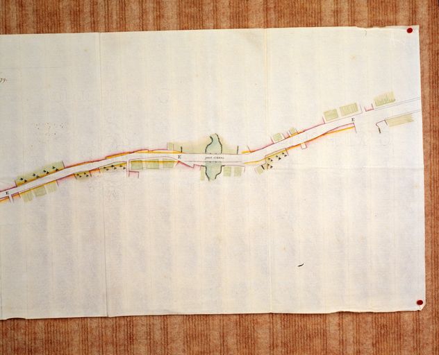 Plan de la traversée de la ville (1779). Tronçon entre le faubourg Glatinier et le pont Crasseaux (A.D. Ille-et-Vilaine, C 731/6)Immatriculation