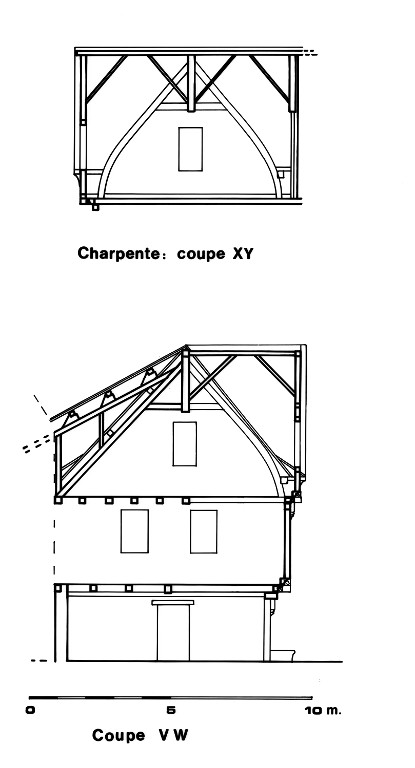 Plan au sol ; poutraison ; charpente : coupes X Y et V WImmatriculation