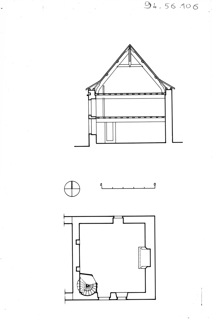 Plan au sol du rez-de-chaussée et coupe transversaleImmatriculation