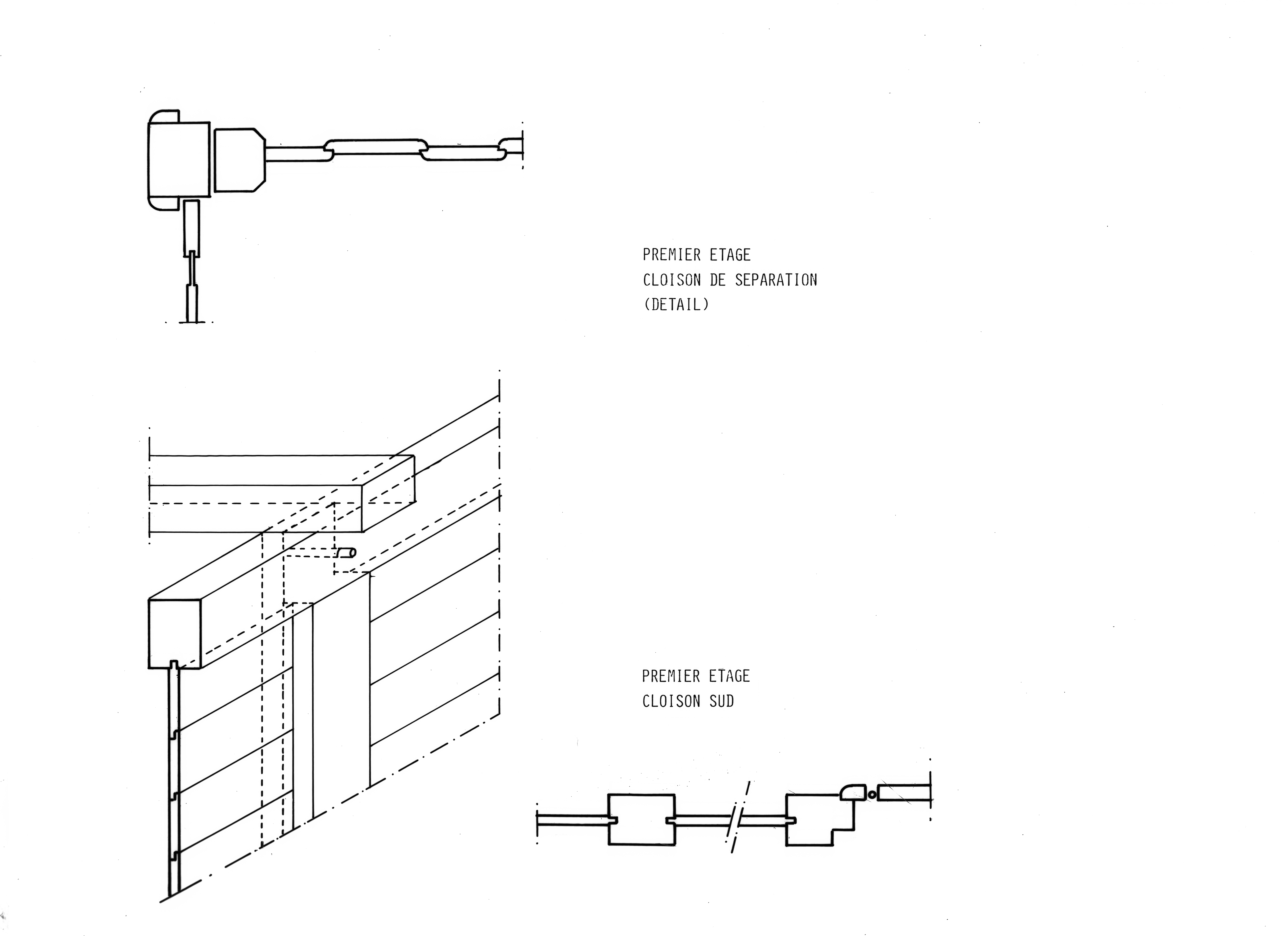 Maison, premier étage, corps principal : cloison de séparation ; cloison de séparation entre le corps principal et l'aile en retour (état en 1994)Immatriculation