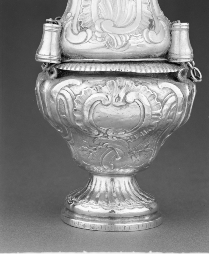 Encensoir : détail de la panse du pied (état en 1994)Immatriculation
