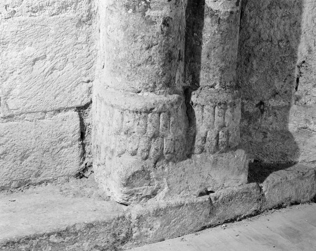 Église, choeur, mur nord : base de colonnettes (état en 1994)Immatriculation