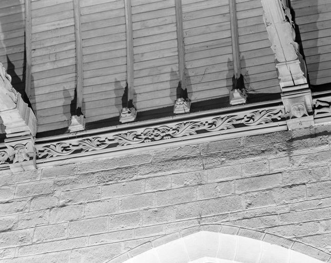 Église, sablière sculptée, partie 11 : une tête de bélier, au centre, crache des branches feuillues (état en 1994)Immatriculation
