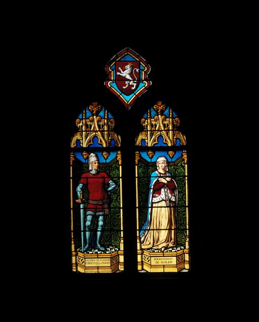 Verrière de la baie 4 : Olivier de Clisson et Marguerite de Rohan (état en 1994)Immatriculation