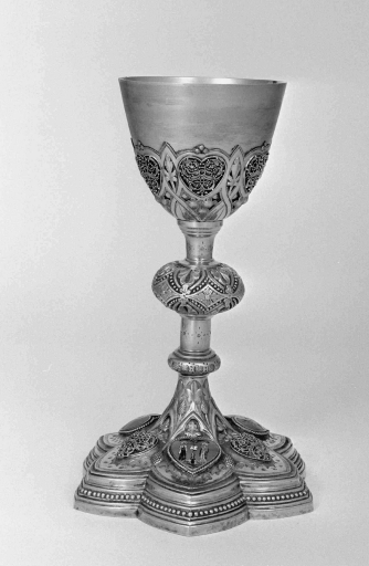 Chapelle : calice, patène, plateau à burettes, burettes, clochette d'autel,