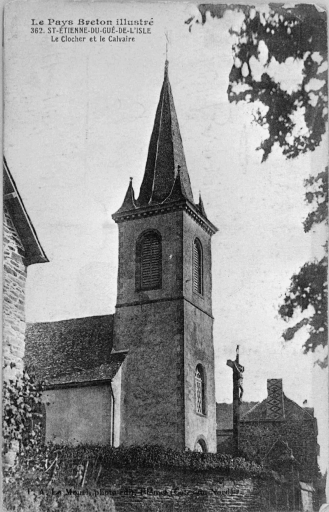 Le clocher et la croix. Carte postale ancienne (coll. Le Mouël)Immatriculation